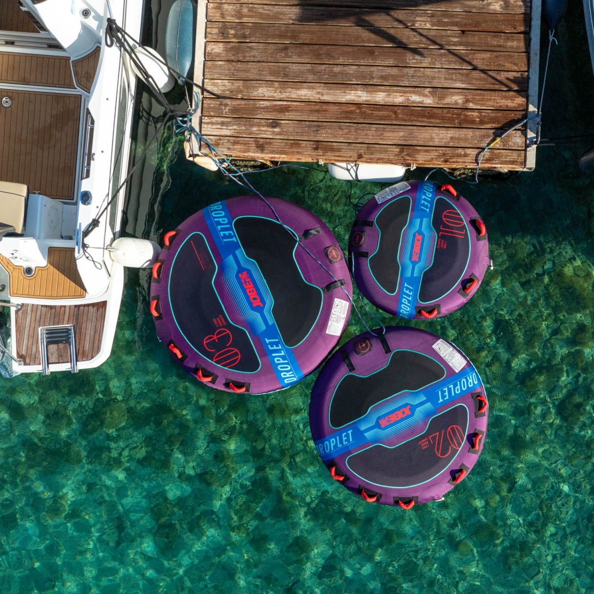 Il Droplet è completamente ricoperto di nylon a doppia cucitura su camere d'aria in PVC resistente. Un comodo connettore a fune rapido consente un facile collegamento e distacco della fune.